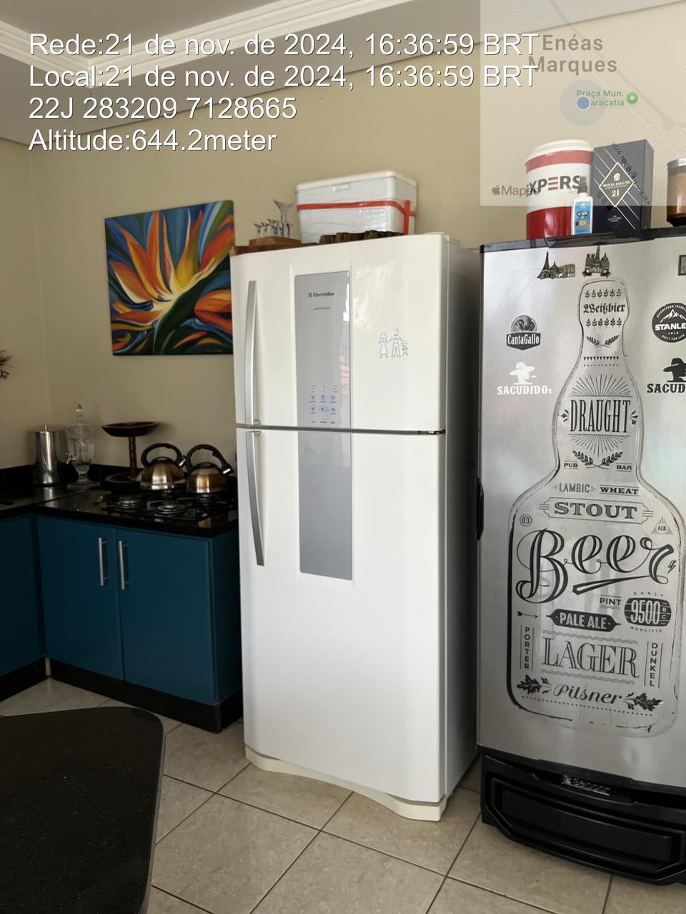 UMA GELADEIRA. COR BRANCA. MARCA ELECTROLUX INFINITY DF 80 FROST FREE.
