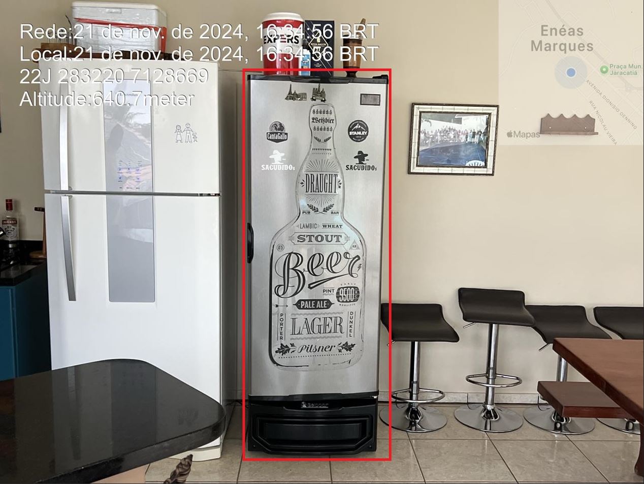 Móveis (geladeira, cervejeira, mesas, churrasqueira elétrica, bancos, balanço, televisão, freezer vertical, aparador e outros).